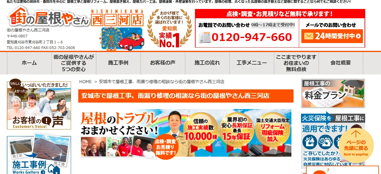 サービス内容雨漏り修理、屋根葺き替え、屋根工事、雨どい工事など