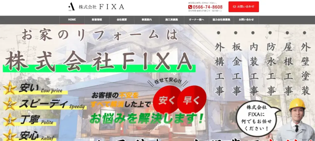 サービス内容リフォーム、外壁工事、雨漏り修理