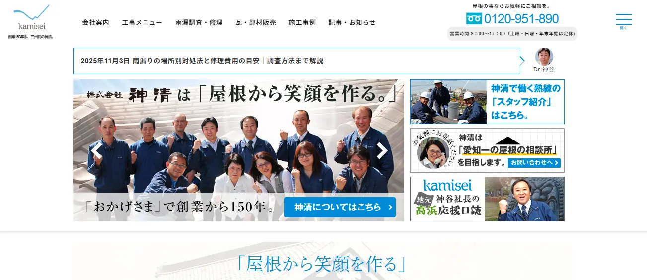 サービス内容屋根の雨漏り修理、屋根工事、防水工・ 屋根工事・ 漆喰工事・ 瓦工事・ 屋根塗装・ 防水工事・ シーリング工事など