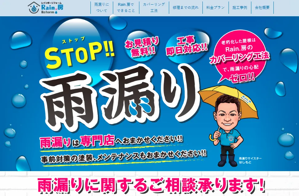 | サービス内容 | 屋根の雨漏り修理、外壁塗装、防水工事、その他雨漏りの部分修理 |
