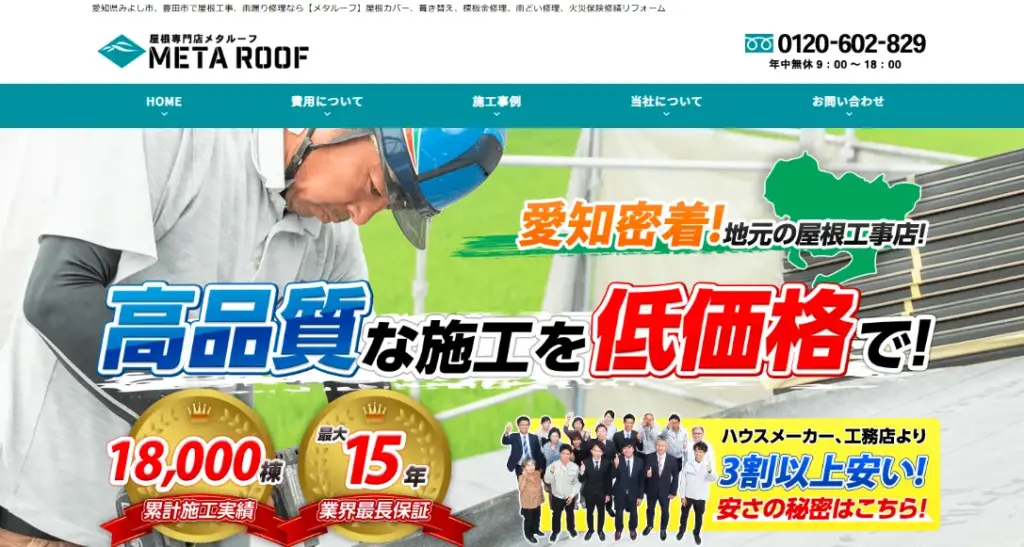 | サービス内容 | 屋根工事、雨漏り修理、屋根カバー、葺き替え、雨どい修理など |