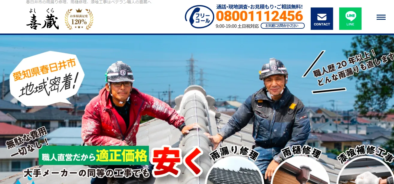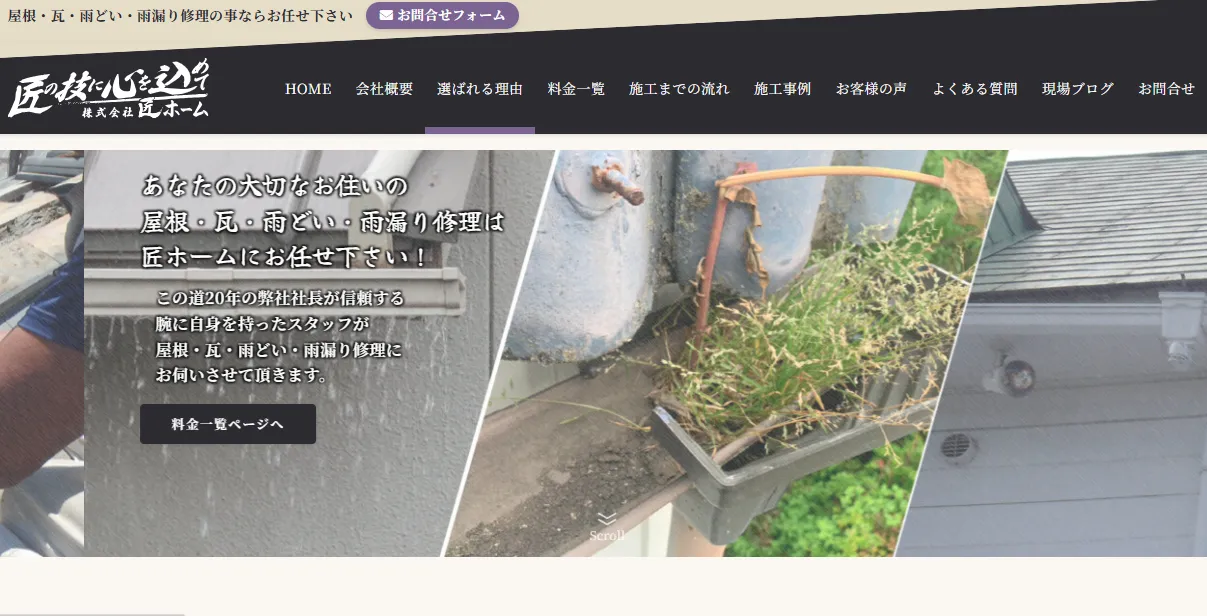 | サービス内容 | 雨漏り修理、漆喰工事、雨樋修理 |