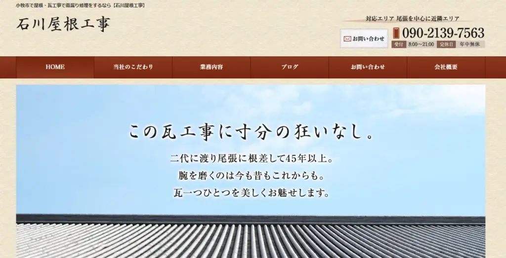 | 運営会社 | 石川屋根工事 愛知県小牧市久保一色南2丁目289番地グローリアス小牧第2 208 |