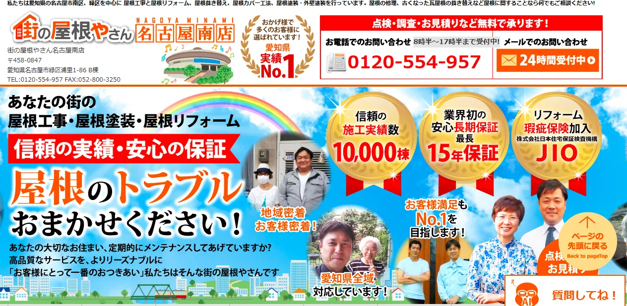 屋根やサッシの部分的な雨漏り修理はもちろん、屋根全体のリフォームや防水工事も行っている業者です。
