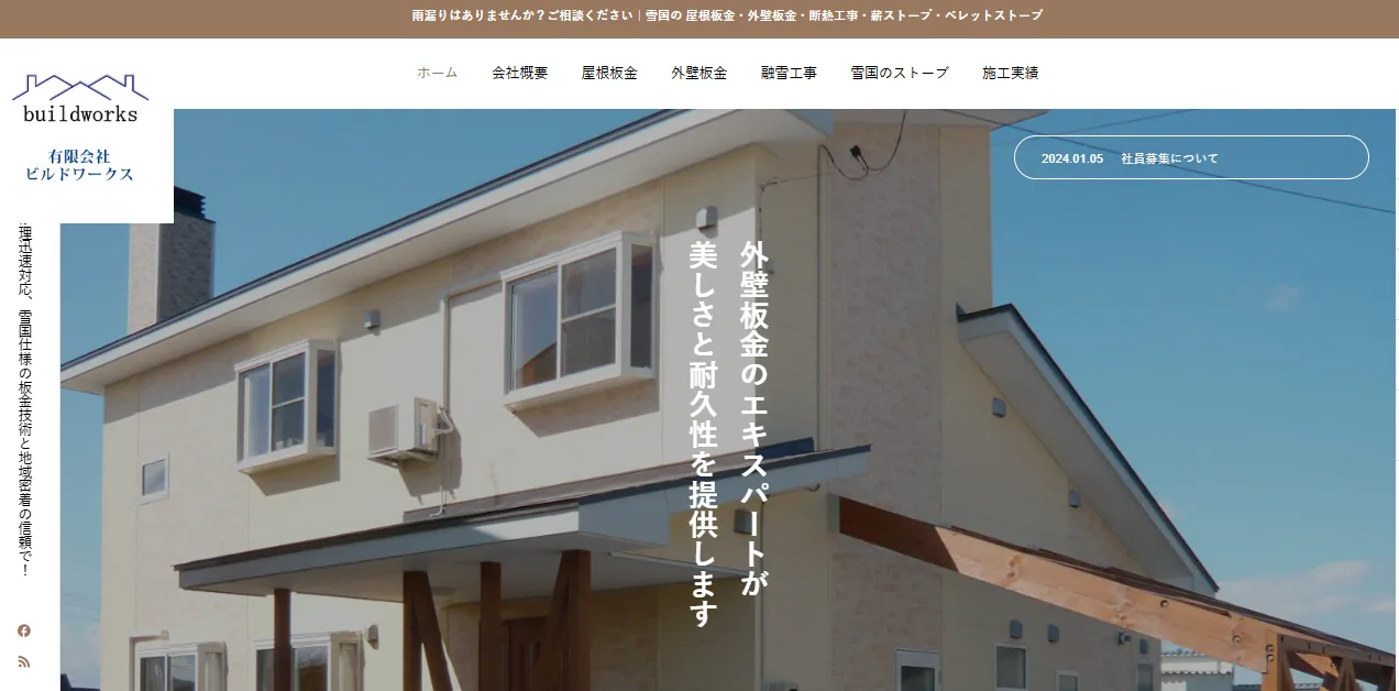 サービス内容屋根工事、雨樋取付け、雪止め工事、外壁工事一式など