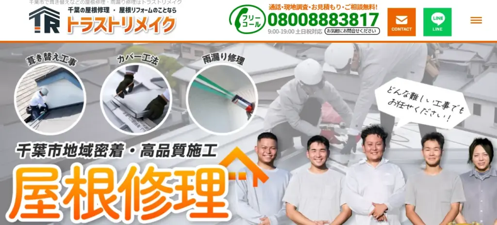 屋根やサッシの部分的な雨漏り修理はもちろん、屋根全体のリフォームや防水工事も行っている業者です。