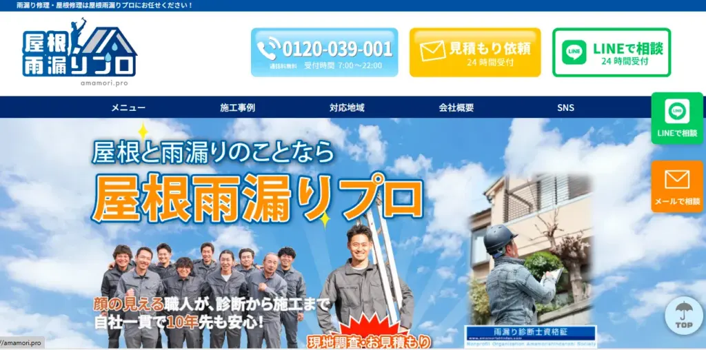 | サービス内容 | 屋根の雨漏り修理、雨漏り調査、屋根工事、防水工事など |