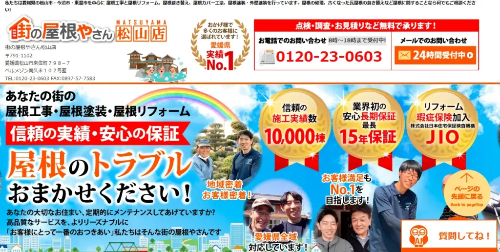 | 運営会社 | 株式会社屋根プラス 愛媛県松山市和気町2丁目923番地 |