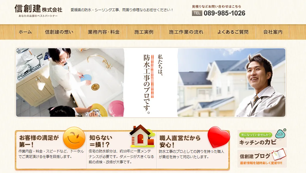 サービス内容各種防水工事 、各種シーリング工事、各種雨漏補修工事など