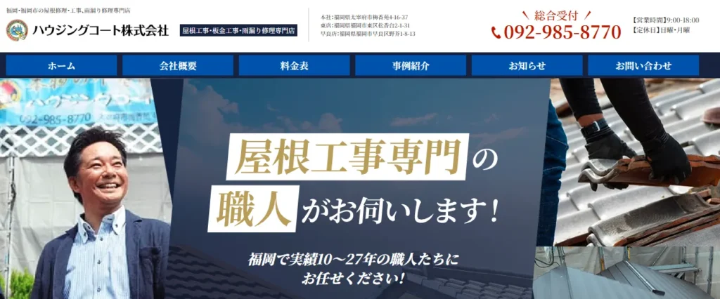 | サービス内容 | 屋根の葺き替え、屋根塗装、雨漏り修理、雨とい工事など |