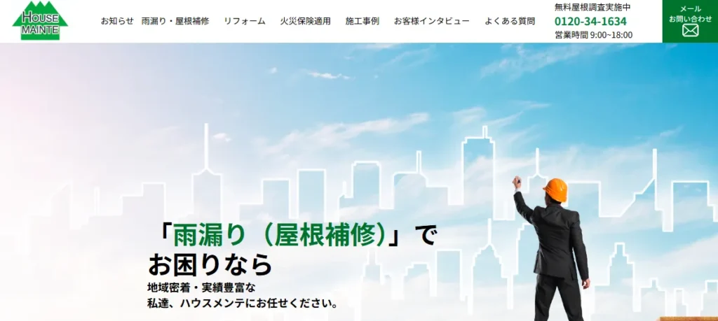 | サービス内容 | 屋根工事、雨漏り修理、防水工事、屋根の葺き替えなど |