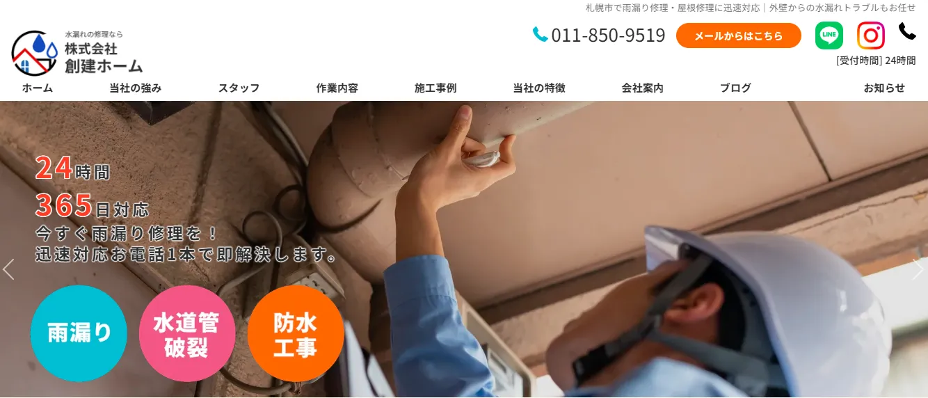深夜・早朝でも電話相談が可能なので、急な雨漏りトラブルの際に頼りになります。
