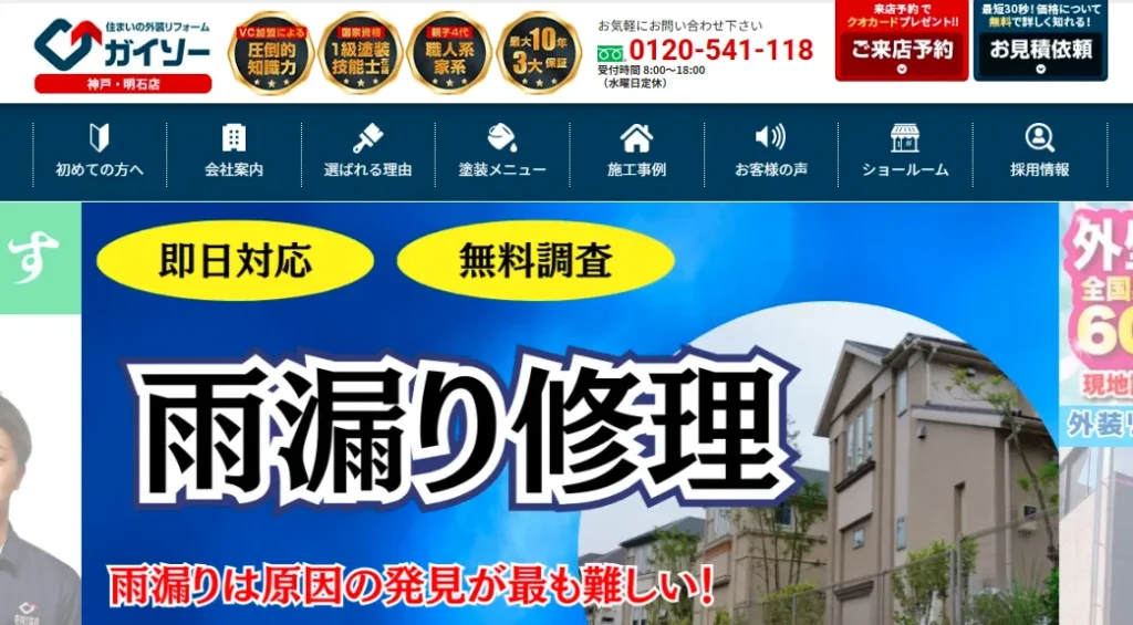 | サービス内容 | 屋根の雨漏り修理、外壁塗装、防水工事、その他雨漏りの部分修理 |