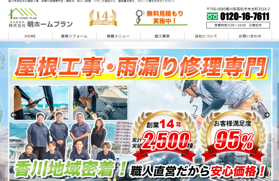 深夜・早朝でも電話相談が可能なので、急な雨漏りトラブルの際に頼りになります。