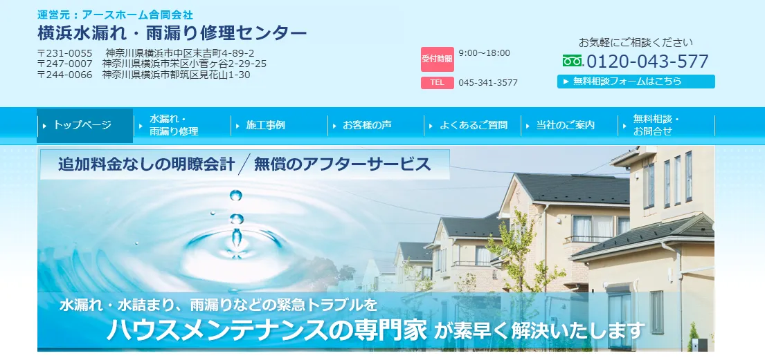 深夜・早朝でも電話相談が可能なので、急な雨漏りトラブルの際に頼りになります。