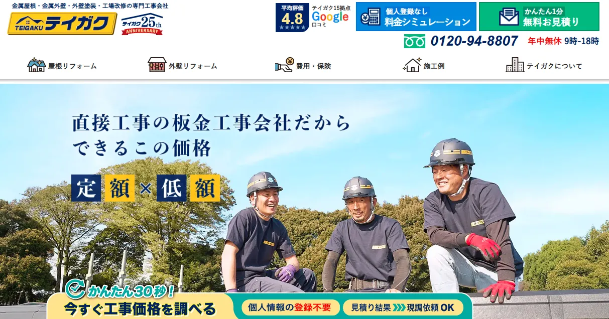 雨漏り修理を含め、運営会社への累計問い合わせ数は500万件以上です。部分修理にも対応しており、修理費用が27,500円~とリーズナブルで、最短30分程度で現地調査に来てもらえます。