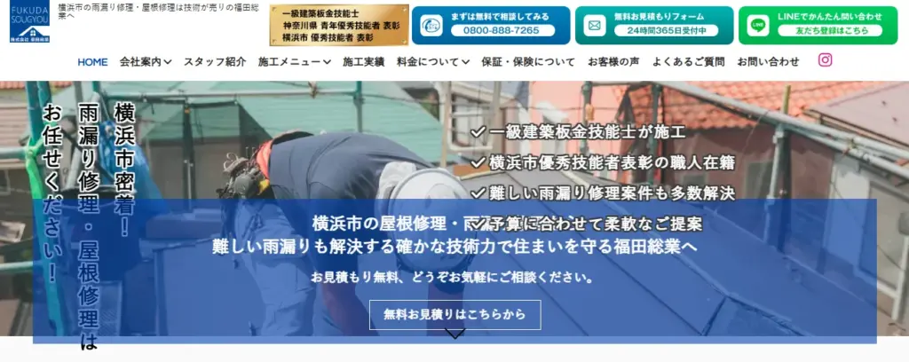 屋根やサッシの部分的な雨漏り修理はもちろん、屋根全体のリフォームや防水工事も行っている業者です。