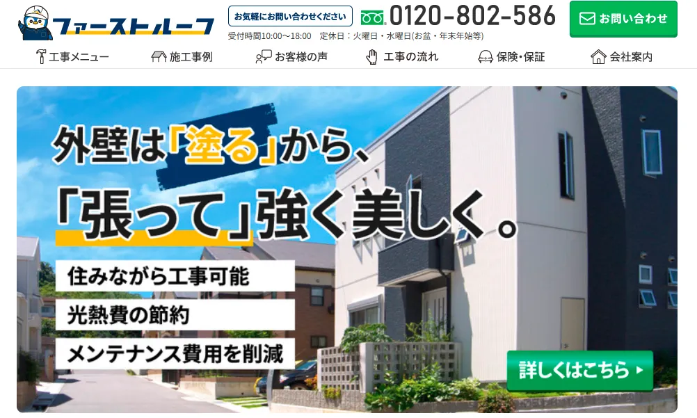 サービス内容屋根工事、雨漏り・水漏れメンテナンス、屋根交換、リフォームなど
