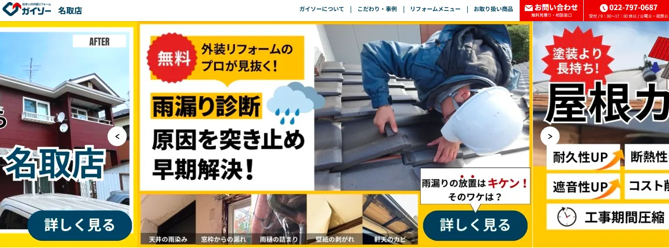 屋根やサッシの部分的な雨漏り修理はもちろん、屋根全体のリフォームや防水工事も行っている業者です。