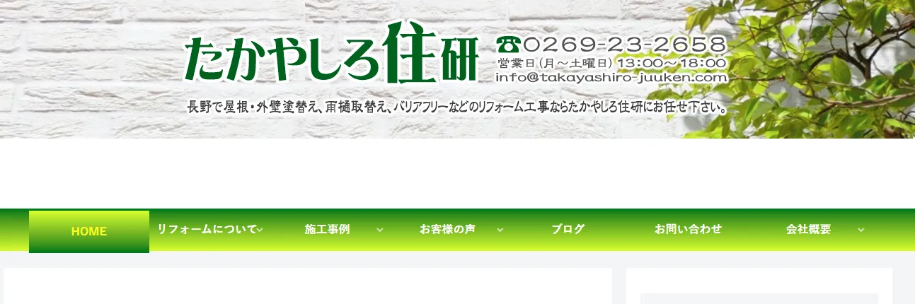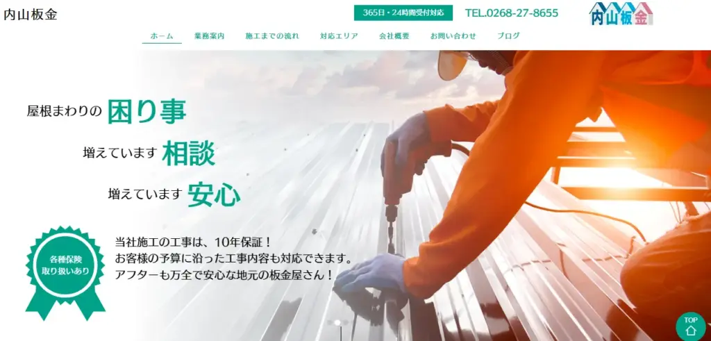 サービス内容屋根工事、雨樋工事、雪止工事、外壁工事など
