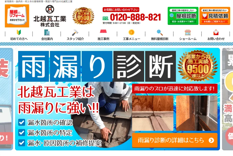 | サービス内容 | 雨漏り修理、雨樋工事、屋根工事一式など |