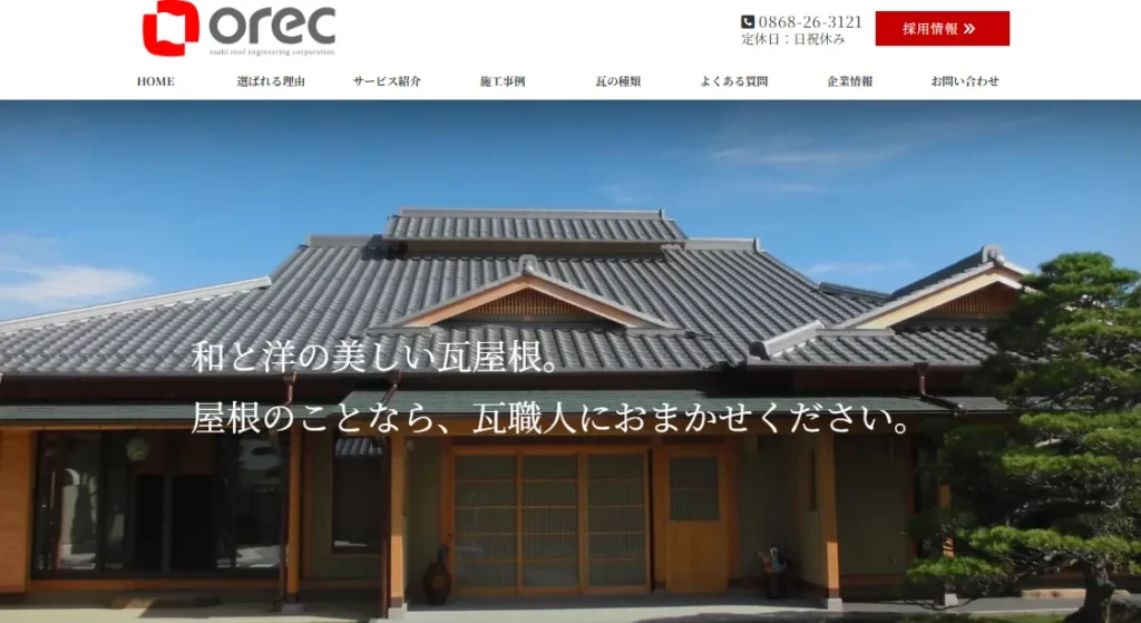 | サービス内容 | 瓦の張り替え修理、隅棟(すみむね)屋根の修理修繕など |