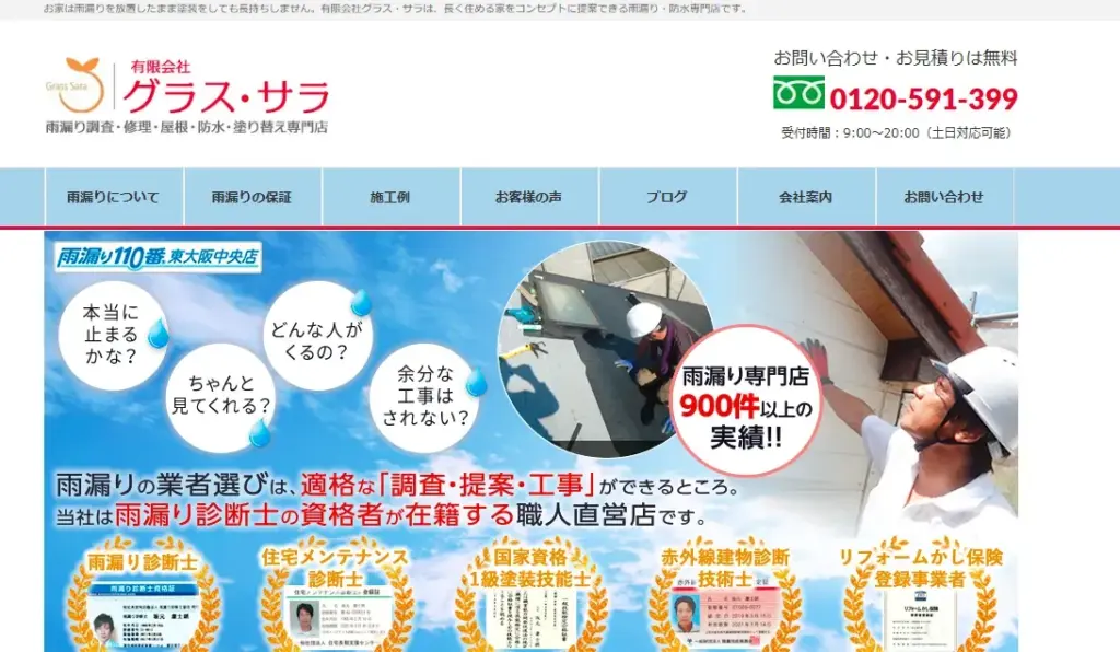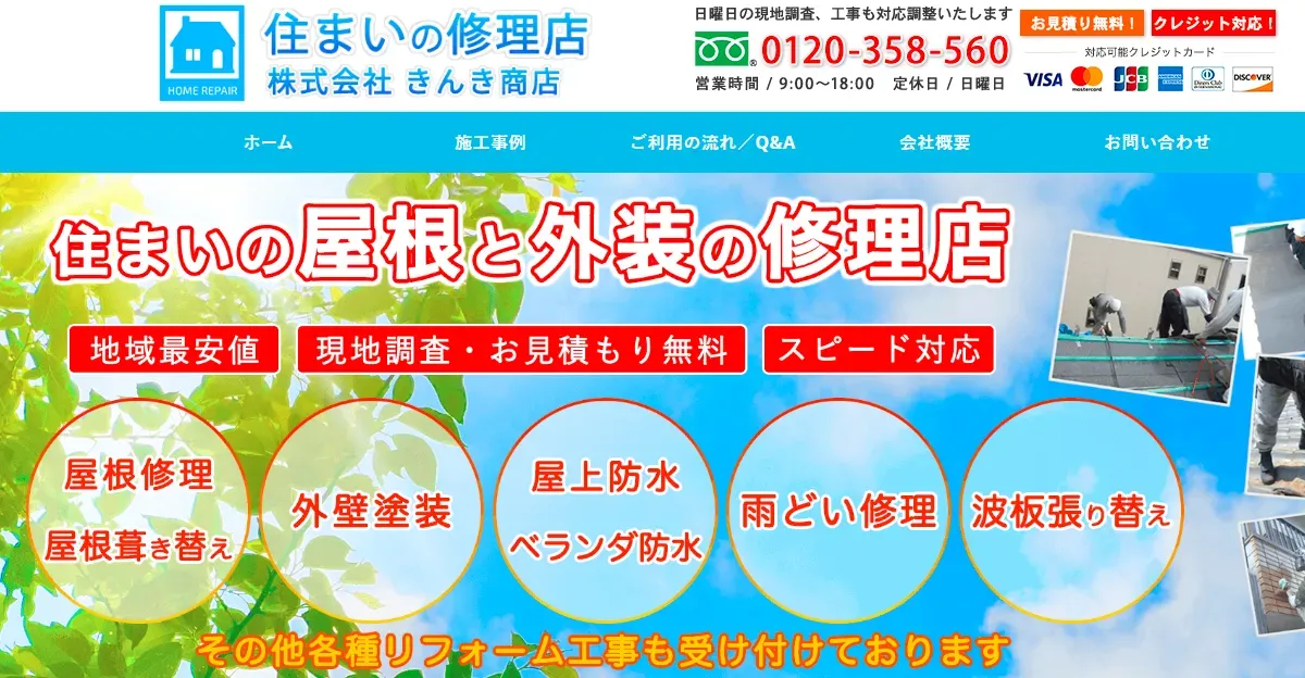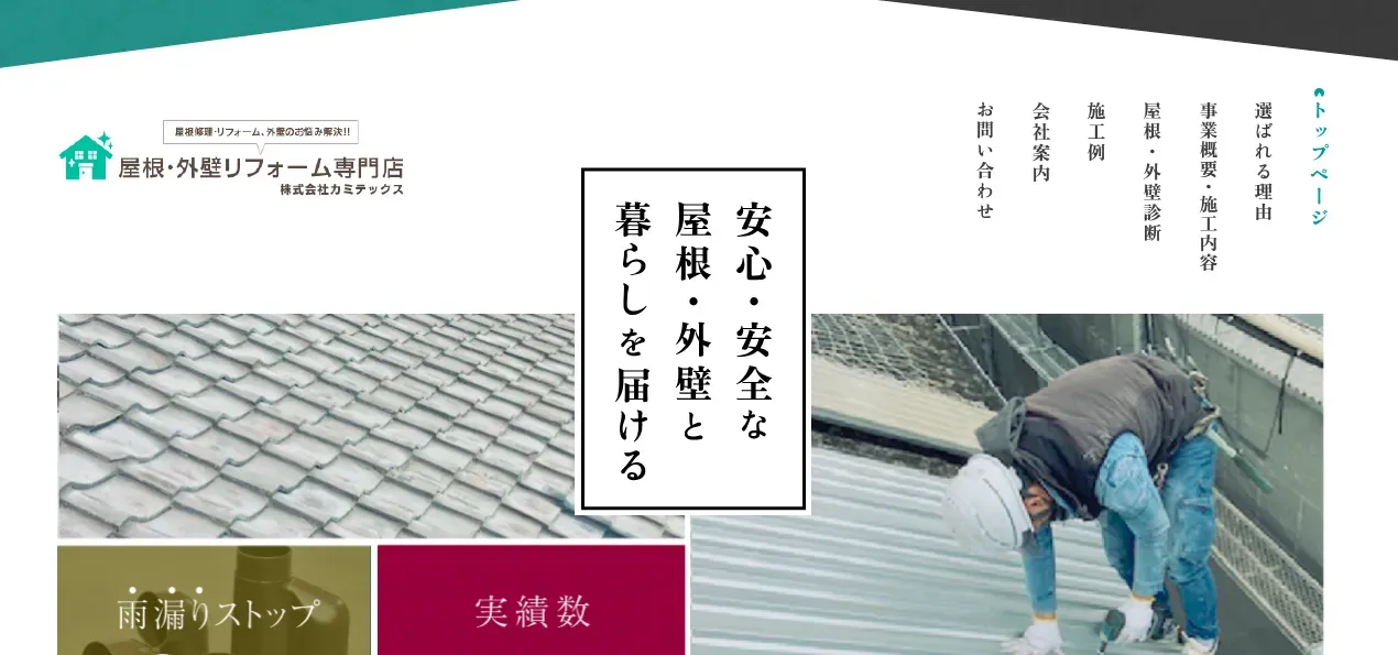 | サービス内容 | 雨漏り調査・修理、リペア工事 、防水工事、屋根葺き替え工事など |