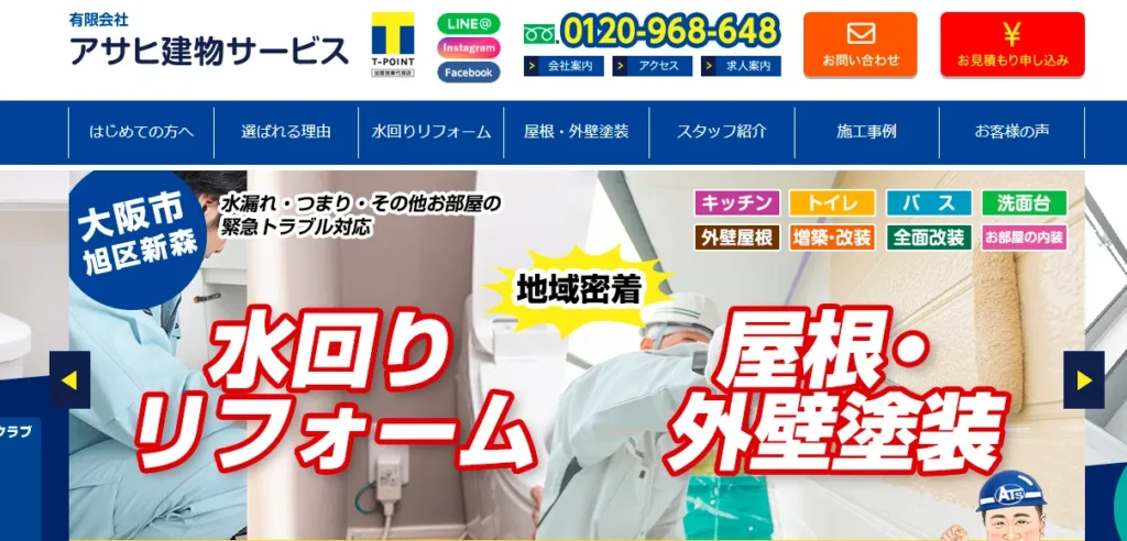 | サービス内容 | 雨漏り工事、各種塗装工事、外壁工事、屋根工事、シーリング工事など |