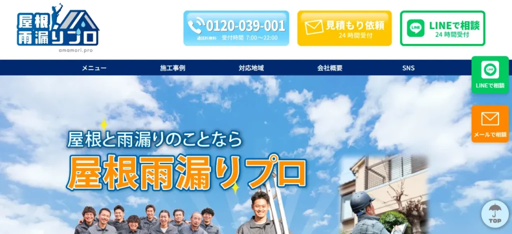 深夜・早朝でも電話相談が可能なので、急な雨漏りトラブルの際に頼りになります。