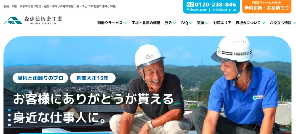 サービス内容雨漏り工事、板金工事、外壁工事、屋根工事など