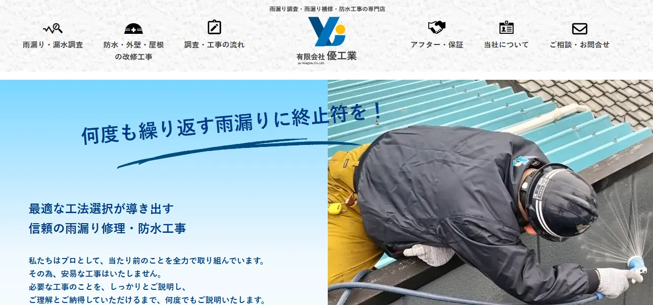 | サービス内容 | 防水工事全般、外装工事、雨漏り調査、雨漏り補修工事など |