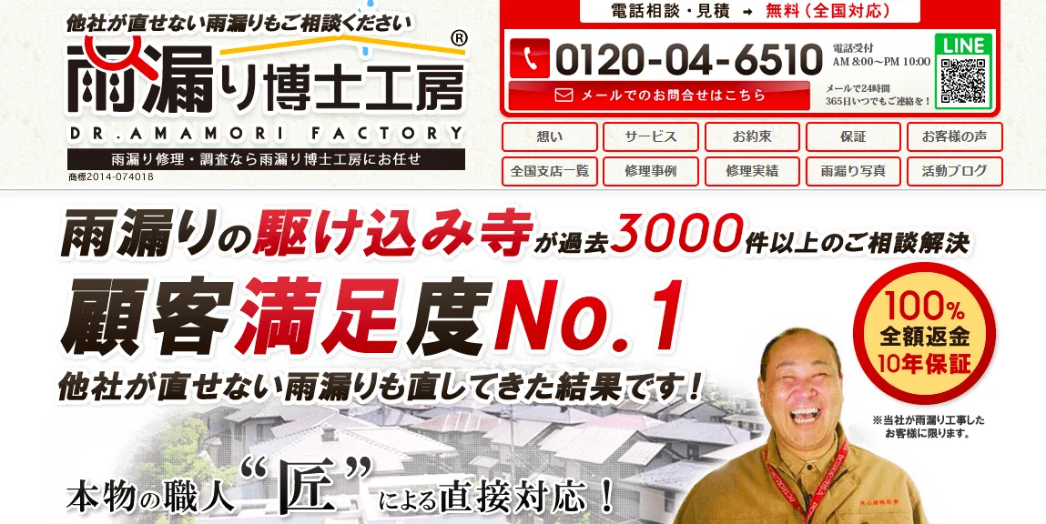 | 運営会社 | 雨漏り博士工房 大阪市住之江区平林北2丁目2番3号 |