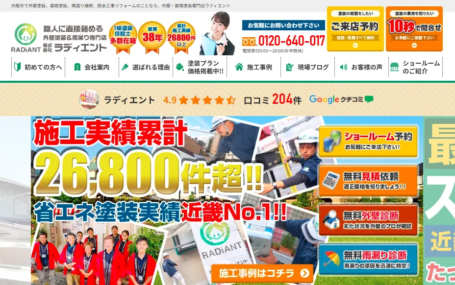 サービス内容外壁塗装、屋根塗装、雨漏り補修、防水工事など