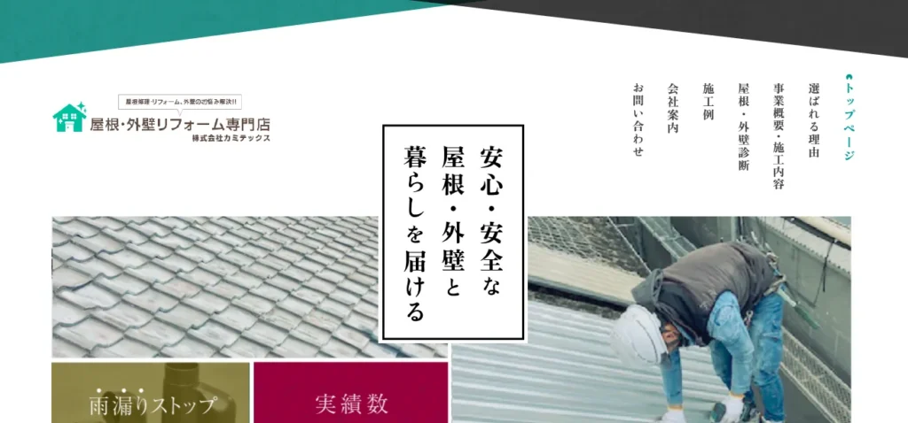 屋根やサッシの部分的な雨漏り修理はもちろん、屋根全体のリフォームや防水工事も行っている業者です。