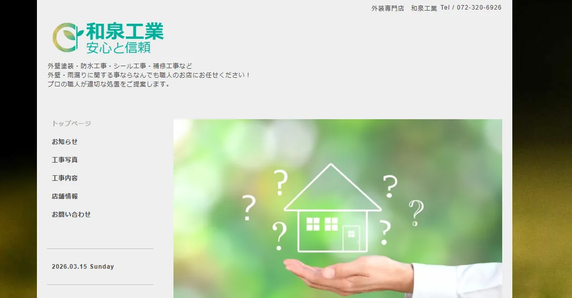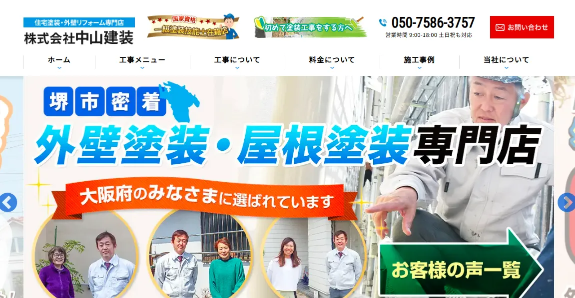 サービス内容雨漏り工事、各種塗装工事、外壁工事、屋根工事、シーリング工事など