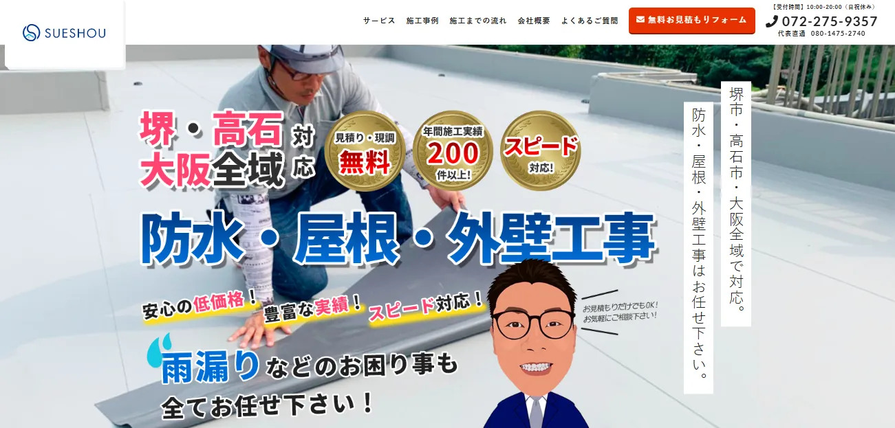 サービス内容雨漏り修理、防水工事全般、屋根工事全般、外壁工事全般など