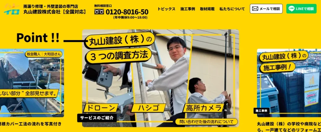 深夜・早朝でも電話相談が可能なので、急な雨漏りトラブルの際に頼りになります。
