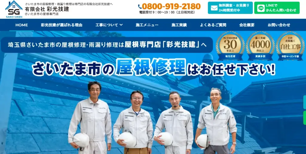 屋根やサッシの部分的な雨漏り修理はもちろん、屋根全体のリフォームや防水工事も行っている業者です。
