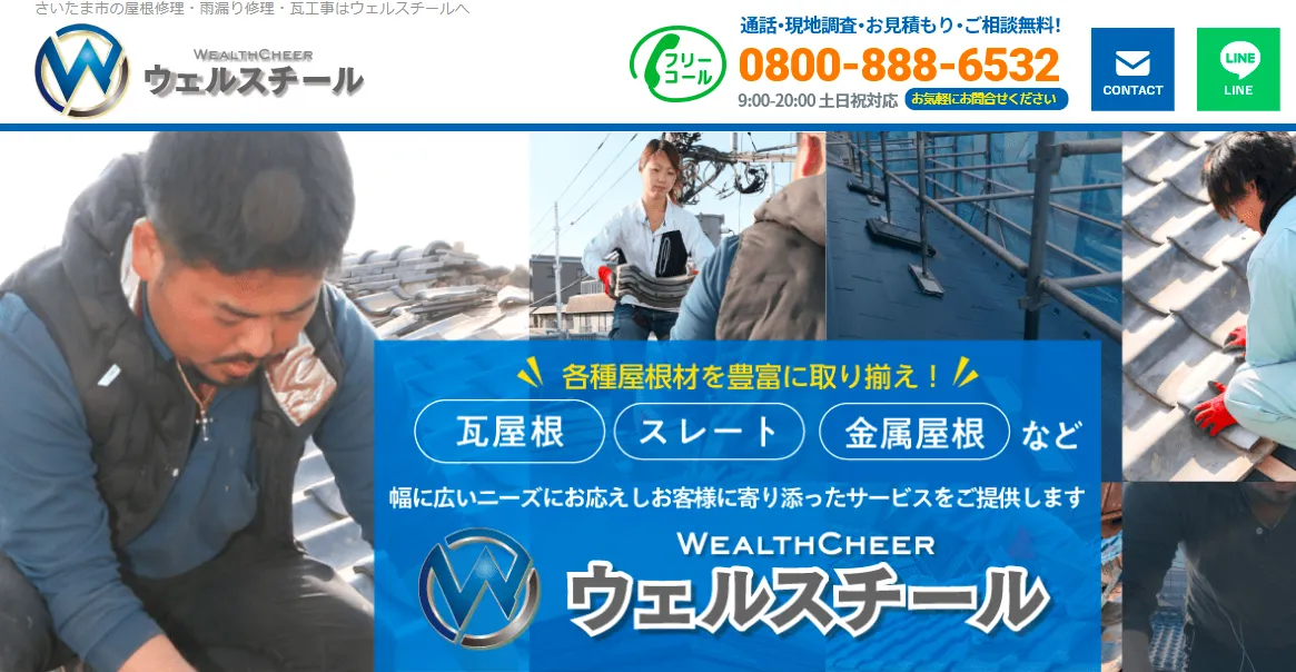 サービス内容屋根葺き替え工事、瓦葺き替え工事、瓦修理・漆喰工事、板金屋根工事など