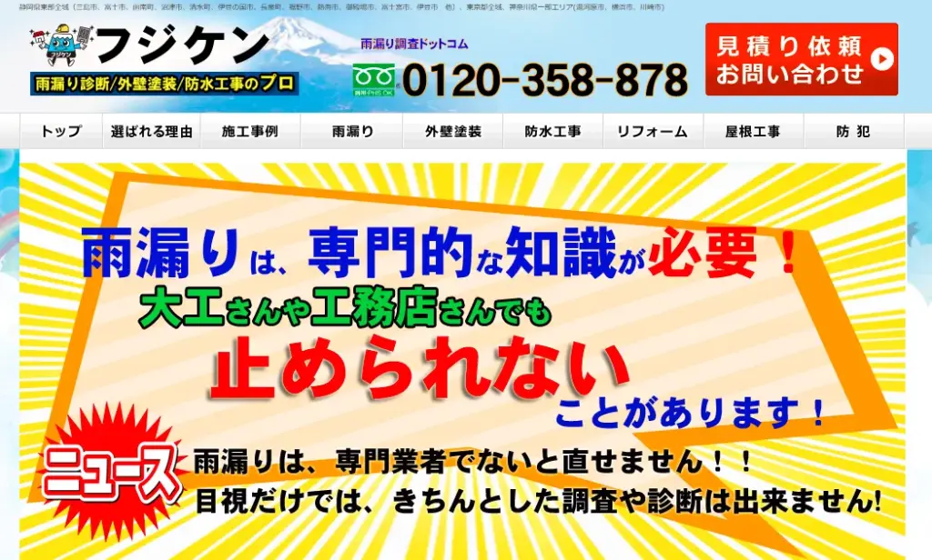 | サービス内容 | 屋根の雨漏り修理、外壁塗装、防水工事、その他雨漏りの部分修理 |