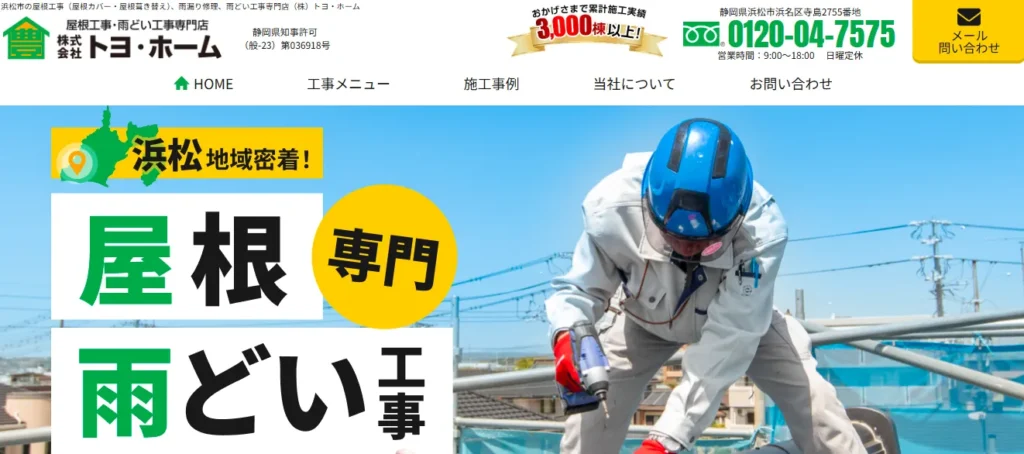 屋根やサッシの部分的な雨漏り修理はもちろん、屋根全体のリフォームや防水工事も行っている業者です。