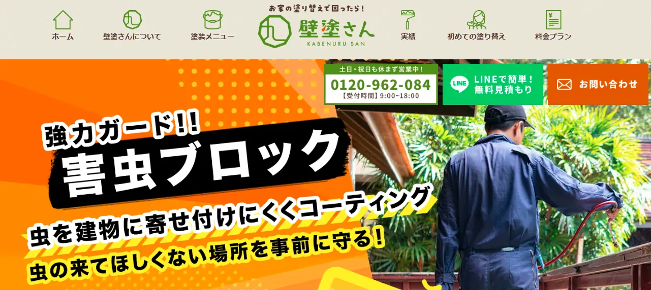 サービス内容外壁塗装工事、屋根塗装工事、雨漏り工事、防水工事など