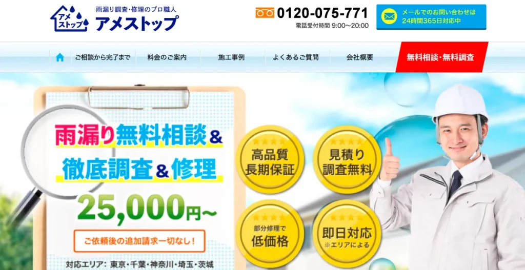 | サービス内容 | 雨漏り修理専門 |