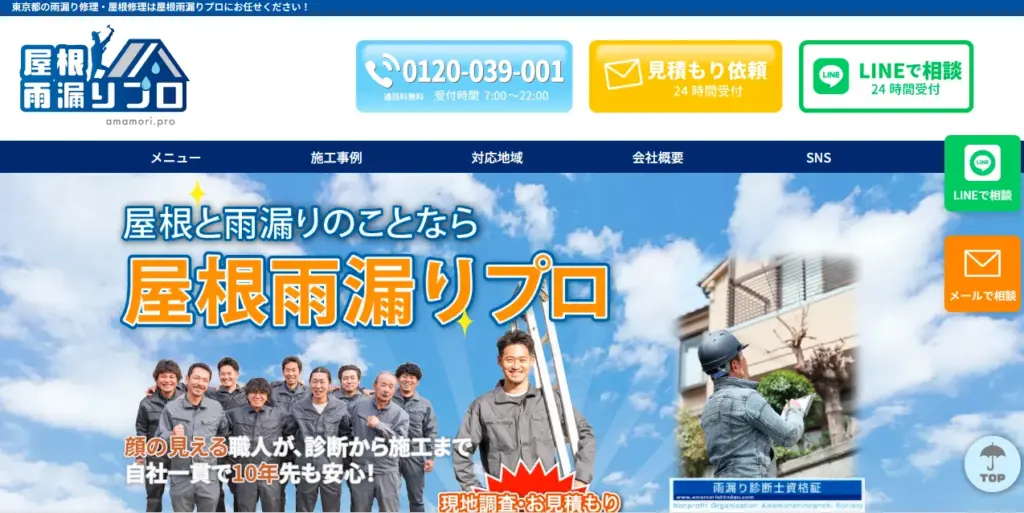 深夜・早朝でも電話相談が可能なので、急な雨漏りトラブルの際に頼りになります。