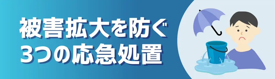 焦って行動すると、被害が拡大する可能性があります。大切なのは、あくまで「応急処置」と割り切り、無理な行動は避けること。この最初の対応が、後の修理費用や家のダメージを大きく左右します。