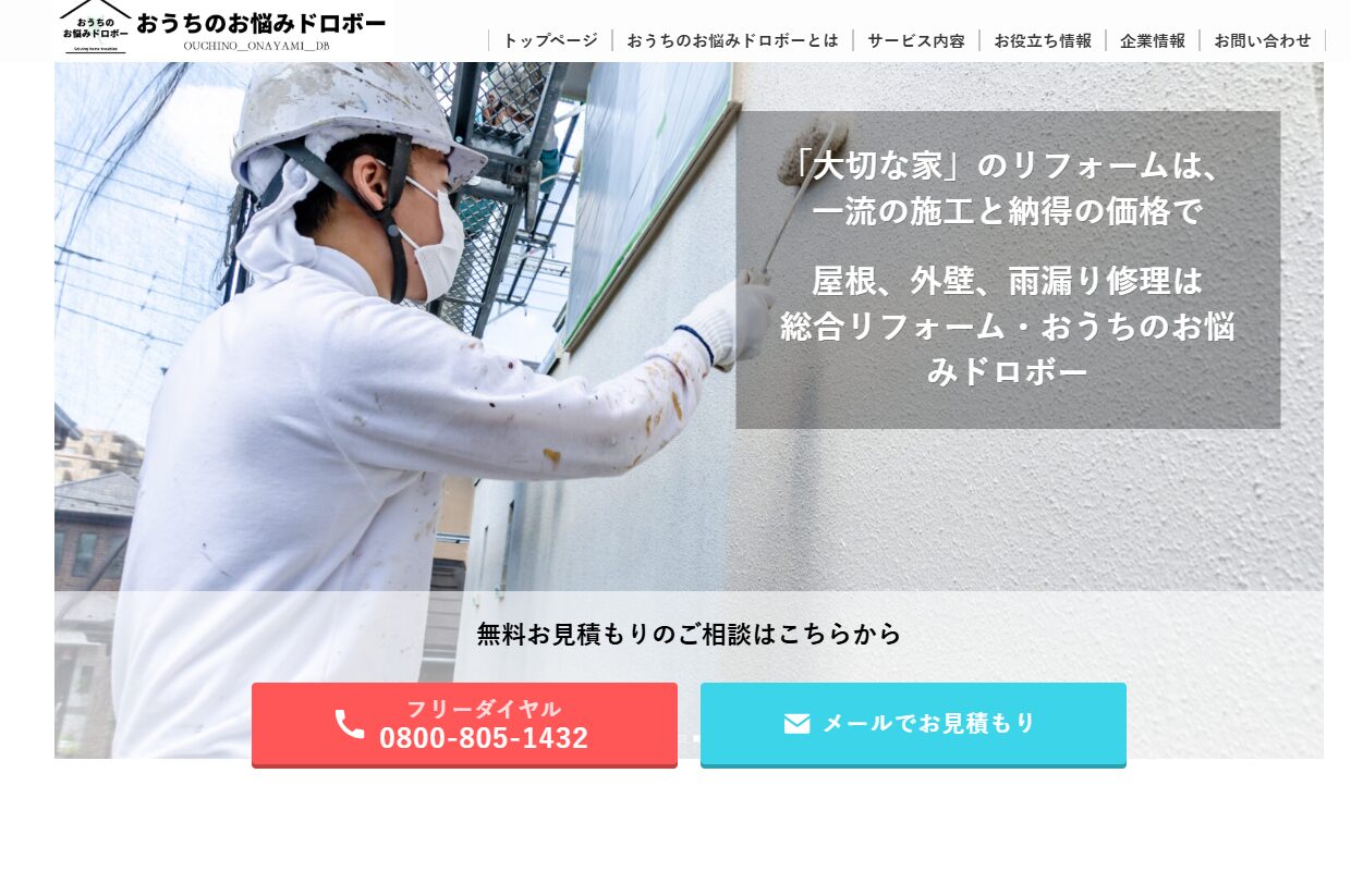 サービス内容 | 屋根の雨漏り修理、防水工事、外壁塗装、屋根工事、雨どい工事など |