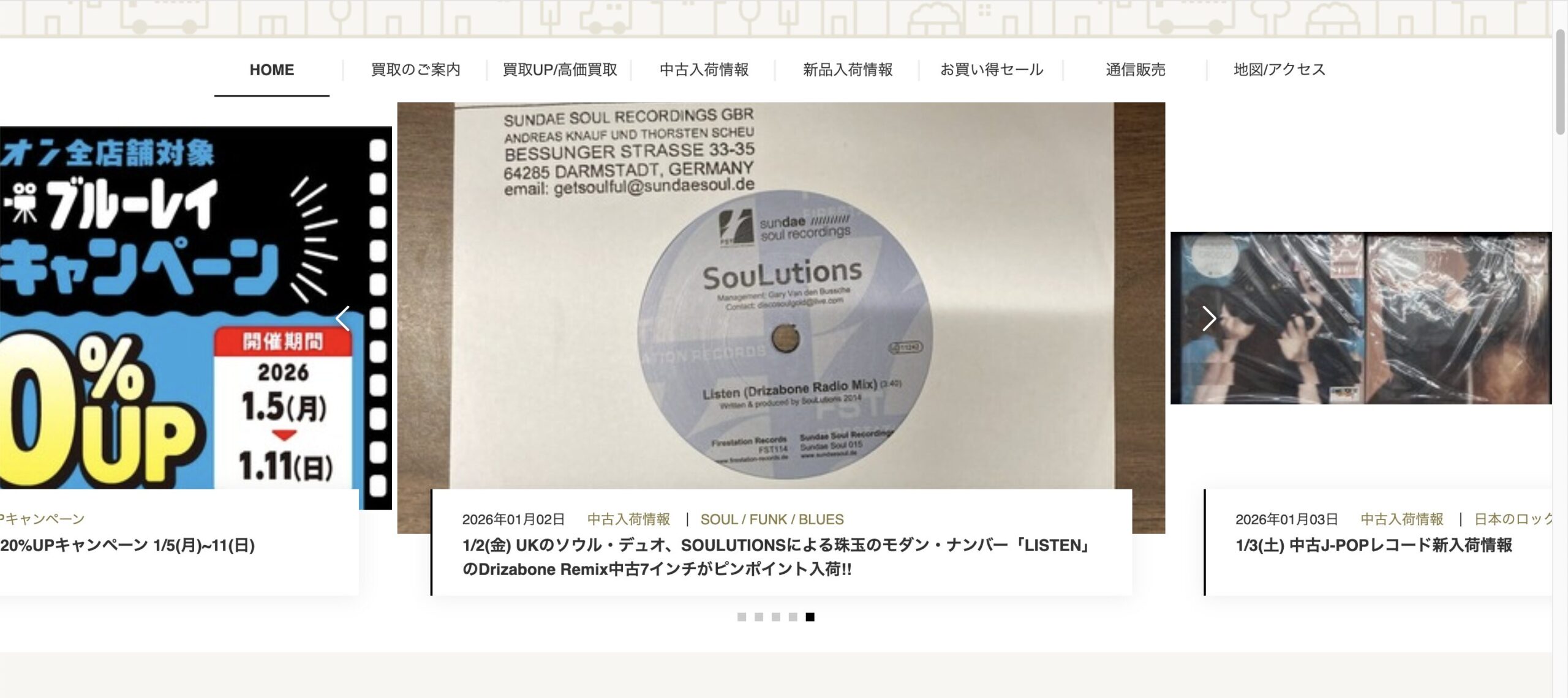 レコードの買取実績や強化買取リストが公式サイトに掲載されているため、高く売れるレコードの特徴が分かりやすいです。ジャズやポップスなどの名盤・限定盤にも強く、さまざまな視点からレコードの価値を正確に査定してもらえます。