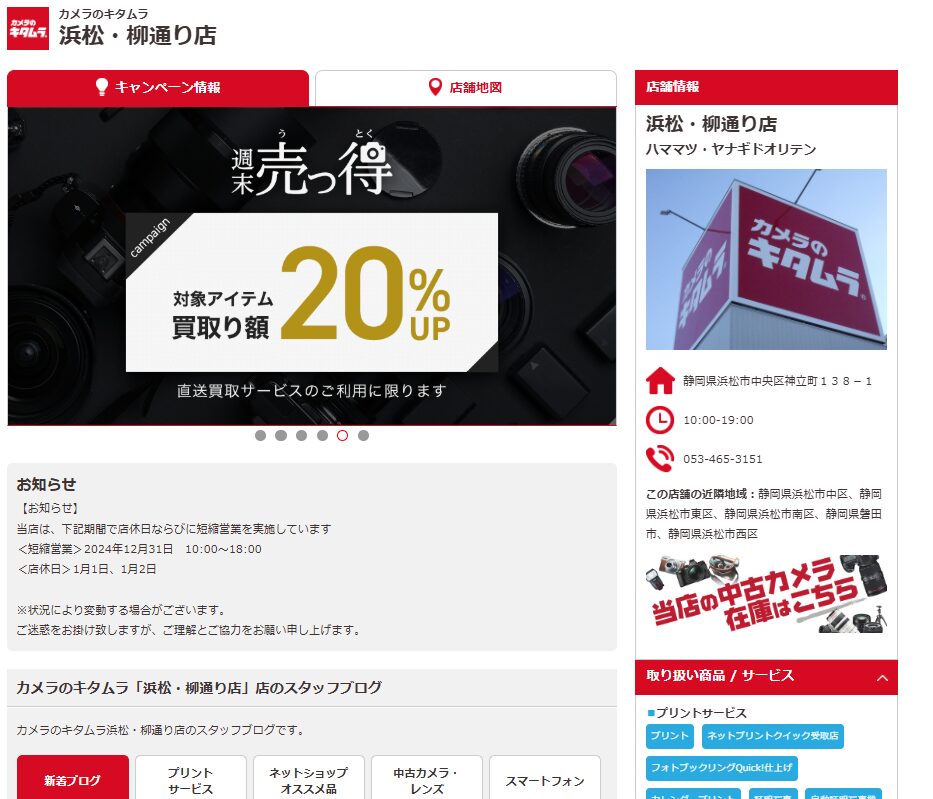 カメラのキタムラ 浜松・柳通り店基本情報