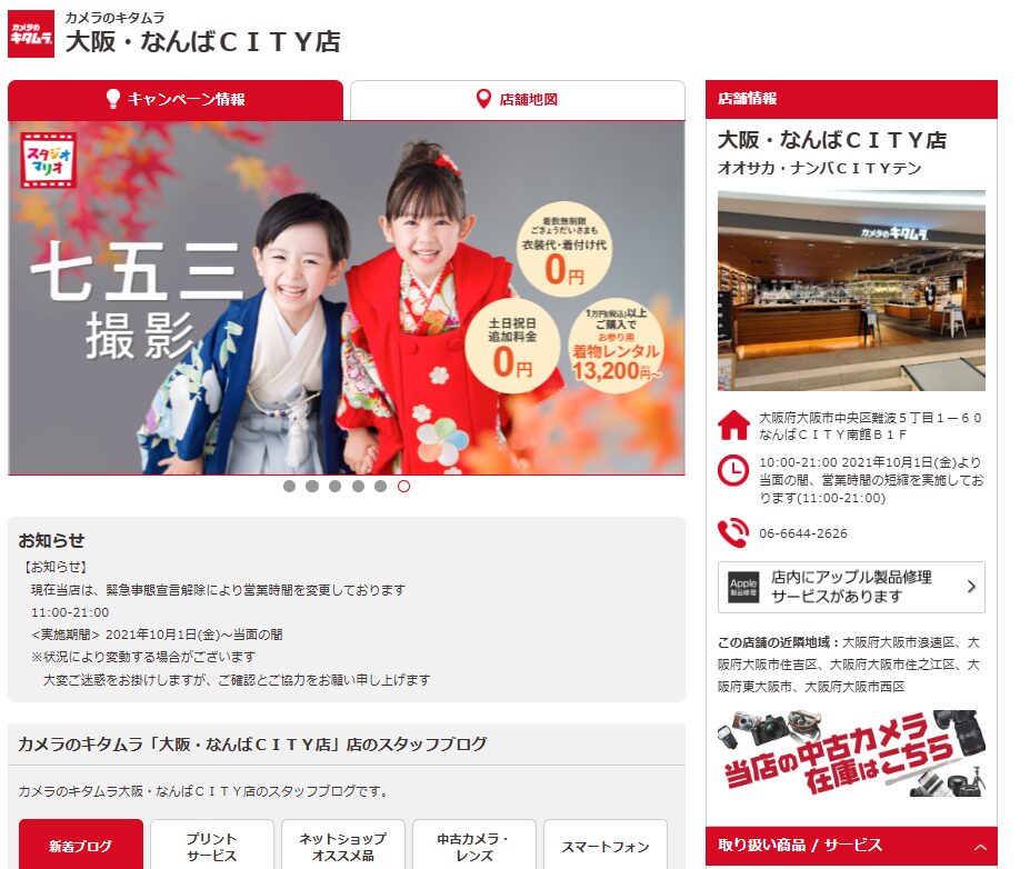 カメラのキタムラ 大阪・なんばCITY基本情報