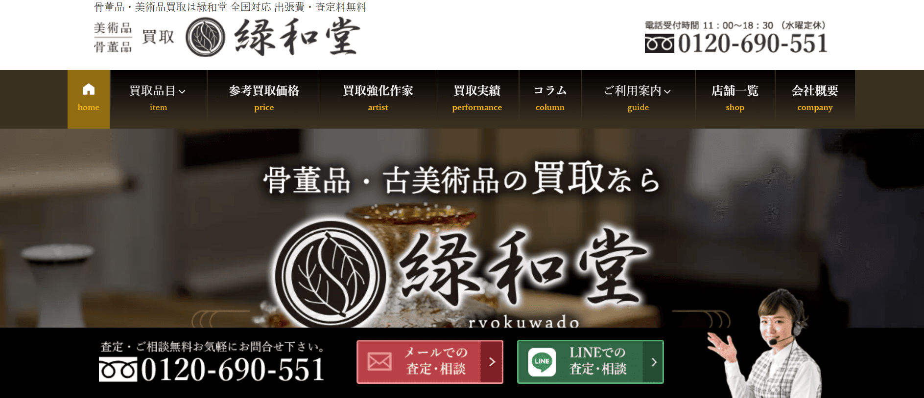 骨董品全般を扱っているが、絵画・美術品の買取は特に高額査定が期待できる。